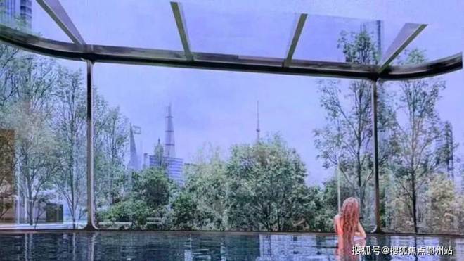 绿城潮鸣外滩官方售楼处电话:400-8818-994【预约☎】泳池周边以弧形玻璃幕墙围合,外侧可直面陆家嘴 “三件套” 与中央公园绿意,内侧能俯瞰社区内的万国喷泉与果岭草坪