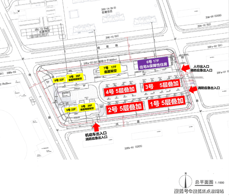 从规划方案来看,「翡雲悦府」二期楼栋的分布总体呈南低北高,东低西高的格局。东南侧分布4栋叠墅,西侧排布2栋22-26层的大高层,北侧排布2栋17层的高层,地块内保障房位于东北角。
