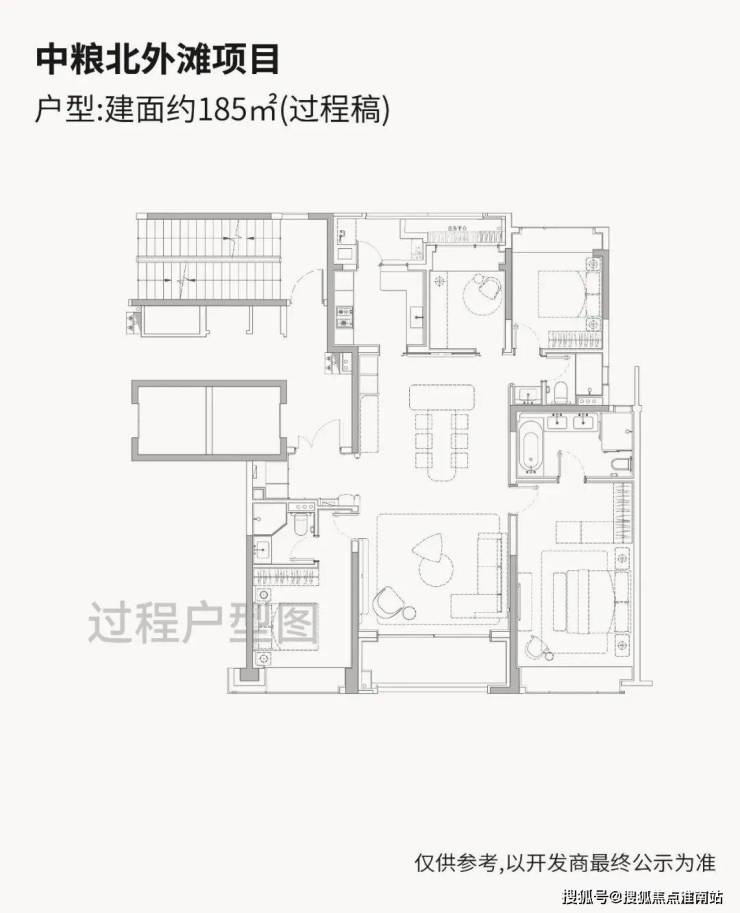 「中粮·北外滩壹号」即将入市的高层户型建面约185-228㎡纯粹4房,尺度感相当奢阔!高层户型均为两梯两户独立电梯厅配置,隐私性与尊崇感拉满!全落地窗设计,270°环幕大边厅户型相当惊艳!超大窗墙比+双套房格局形成多维观景的极致效果!仅90套,珍藏属性拉满!