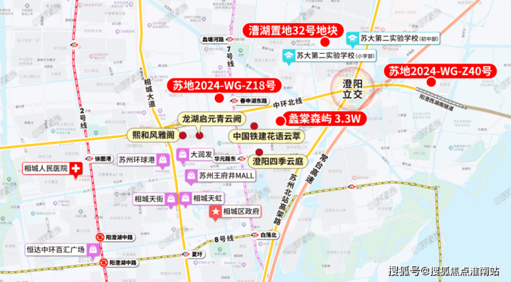 交通上来看,比较近的就是8号线古香圩,但距离有1.4公里左右。自驾上面,项目周边有澄阳立交,阳澄西湖隧道,苏州北站高架路和中环北线等主干道,不管是去往园区还是相城核心都是比较方便的。