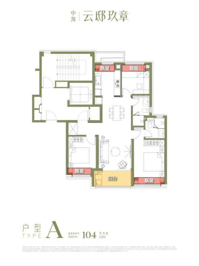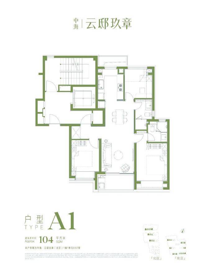 104㎡三房两卫,一梯两户,南北通透飞机户型,基本无连廊,折前单价10.65万/㎡,套均总价不到1100万。