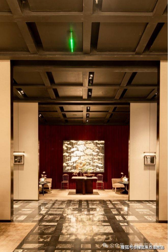材料选用意大利石材,BVLGARI HOTEL大理石,✅✅康定壹拾玖售楼处电话:400-891-9910✅✅铝型材塑型红,四层金属网格墙面以及梧桐叶金属屏风等,打造独属老静安的记忆符号,高奢定制,市区豪宅调性拿捏!