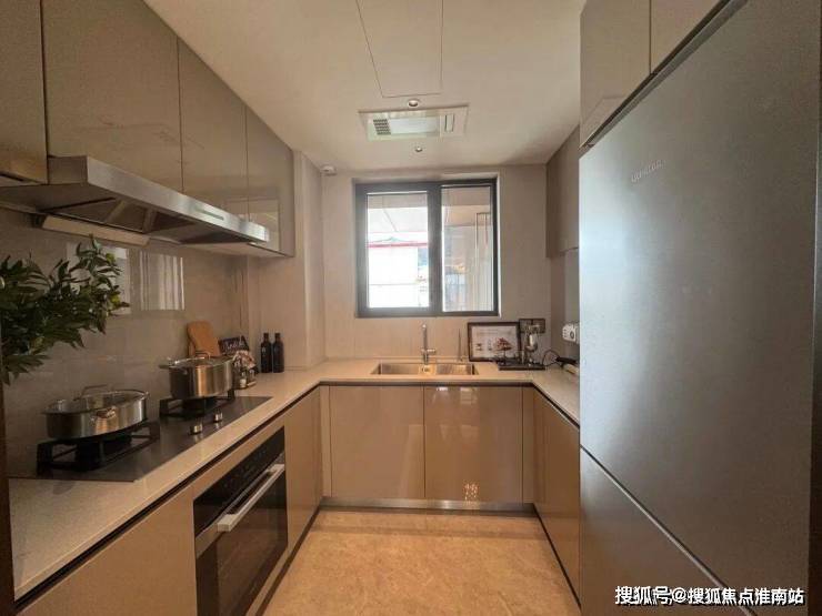 厨房配置美诺四件套(两眼灶+油烟机+洗碗机+蒸烤一体机),进口利勃海尔冰箱,橱柜门板采用的也是豪宅御用的威乃达,配置末端净水、凉霸;约169㎡大户型在此基础上升级了中西双厨带岛台,美诺三眼灶,标准双开门冰箱,净水升级成为软水。
