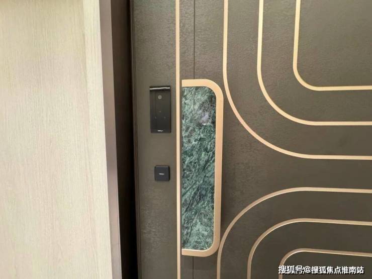外观上,外部门把手金属镶边搭配绿色奢石,门内部的把手上还镶嵌了施华洛世奇水晶,算是一个小小的惊喜,开发商在打造装标上注重功能性的同时也不忘美观性。