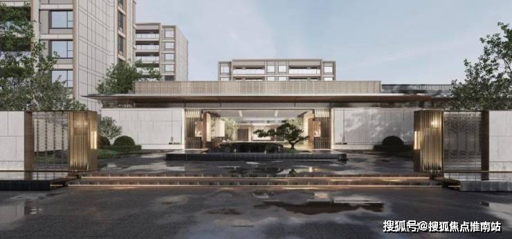 从之前公布的效果图来看,项目的门头采用了古铜铝板+石材打造,融入了白墙灰瓦、劲松流水等江南园林景观元素。
