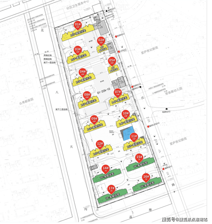 根据规划图所知,项目容积率2.0,地块建设15栋7-16F住宅,项目容积率2.0,拟建4栋7F住宅,以及11栋14-16F住宅;
