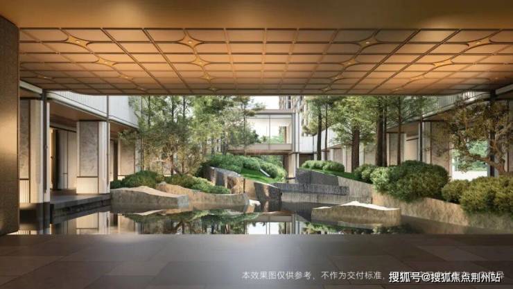 近3000㎡下沉庭院里,水系蜿蜒,潺潺水响交织鸟鸣;