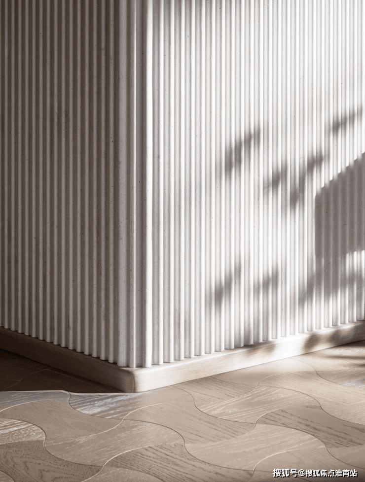 细节之处,连墙板,都是用天然石材打造,造型如同江面泛起涟漪: