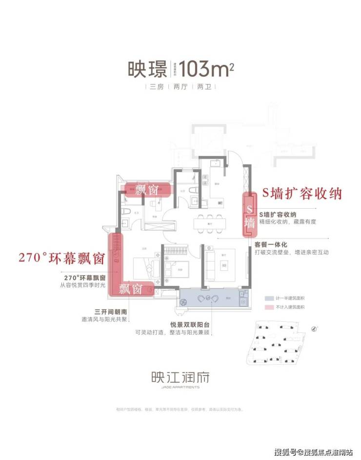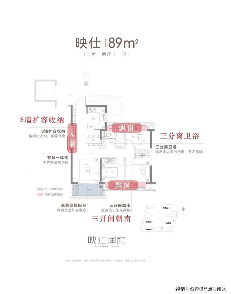 无论是建面约89㎡还是103㎡的户型,均采用了三开间朝南设计,南北通透,更有利于室内收纳更多的阳光与清风,实现更健康的人居、