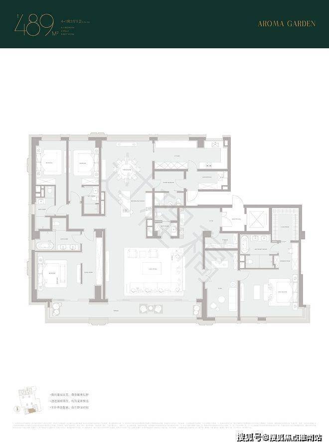 以建面约489㎡户型,实际使用面积就比同类项目多出约25㎡(相当于一间主卧的尺度)。
