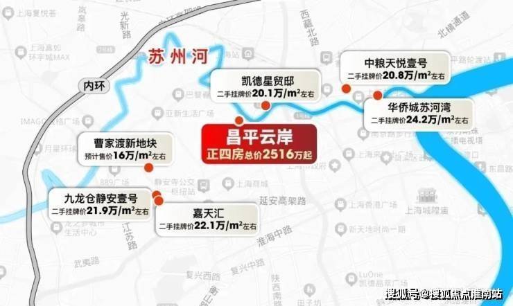 昌平云岸位于寸土寸金的老静安核芯,抱揽苏州河得天独厚的自然景观,享有良好的水岸视野,项目整体地块东高西低,符合堪舆学中青龙抬头,白虎屈服之势。上风上水正位堪舆,藏风聚气,玉带环腰聚财纳瑞,珍藏价值拉满!
