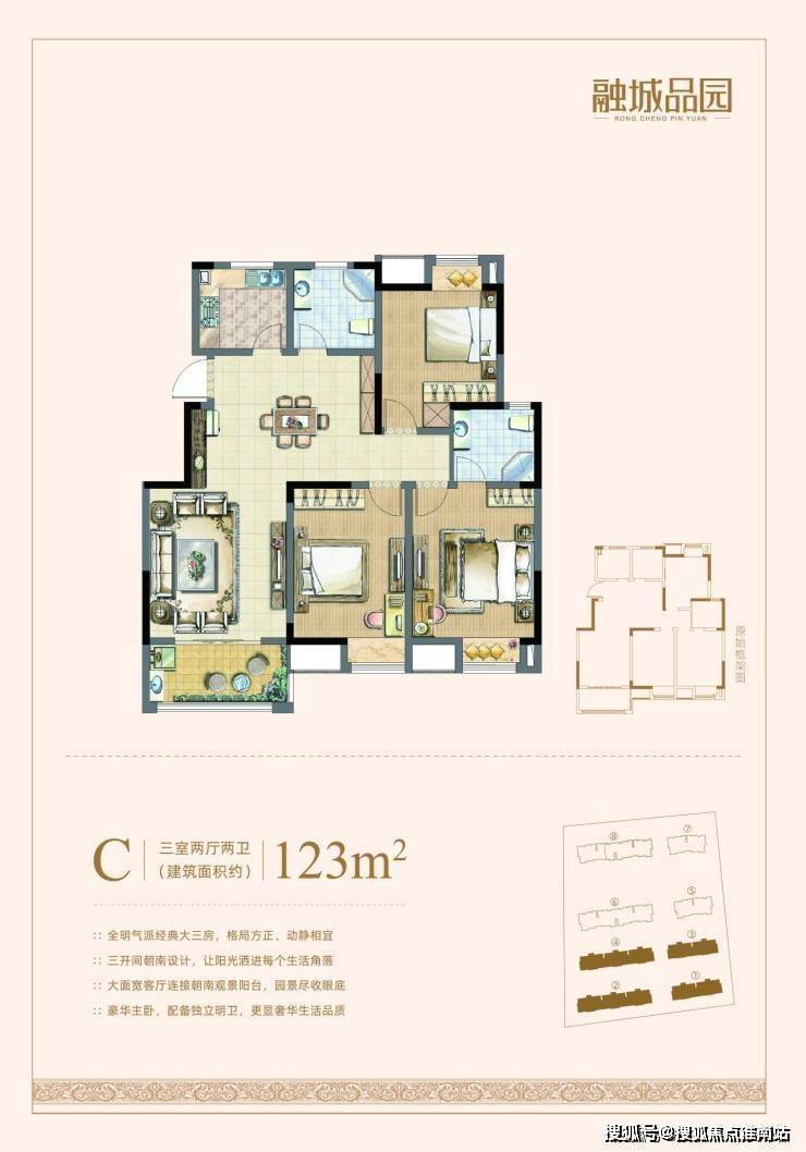 【建面123㎡3居】价格待定-分布于3幢 1幢 2幢 4幢 ,1梯2户,层高2.90米,总楼层6F