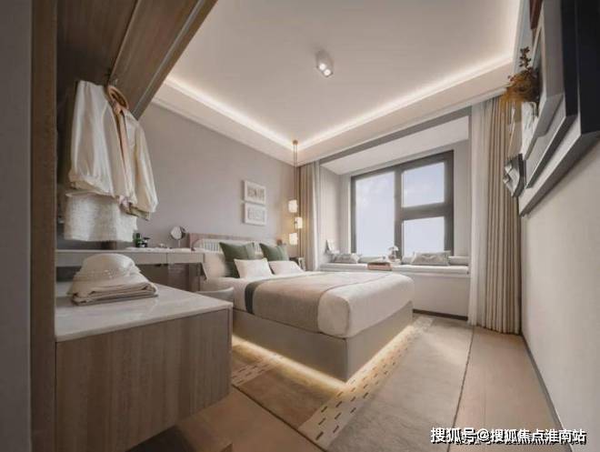 第四个亮点,是南向主卧套房设计,不仅能放得下2*1.8米双人床,且还能保留约1米的过道;同时带独立卫生间和大飘窗,增强私密性.