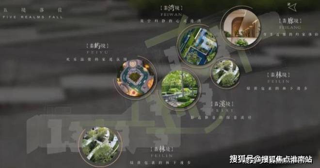 规划了“翡色五境”五大空间氛围,匠造融入时光、人文海派、自然与艺术、家庭与邻里的“四轴、三园、五区、一所”四大功能空间.