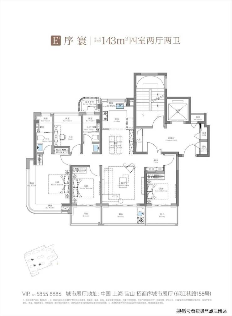 但在建面约143㎡四房户型中,招商序创新性地打造了"三阳台+270°转角飘窗",将南阳台面积拓展至约18㎡,足足比常规产品多出约7-8㎡,相当于多出一个单人卧室的空间。