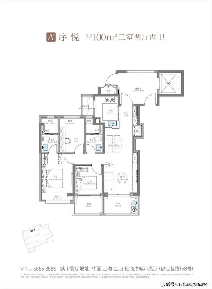 不同于市面上同质化的百平三房设计,招商序以两个建面约100㎡户型——A3中间户与A1边户,彻底颠覆了市场对百平户型的认知。