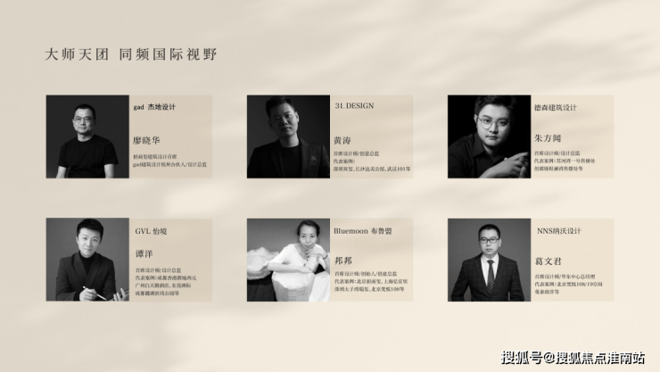 此外还有31.DESIGN、德森建筑设计、NNS纳沃设计、Bluemoon布鲁盟等享誉业界的大师级设计团队,每个设计环节都由业内翘楚亲自操刀。