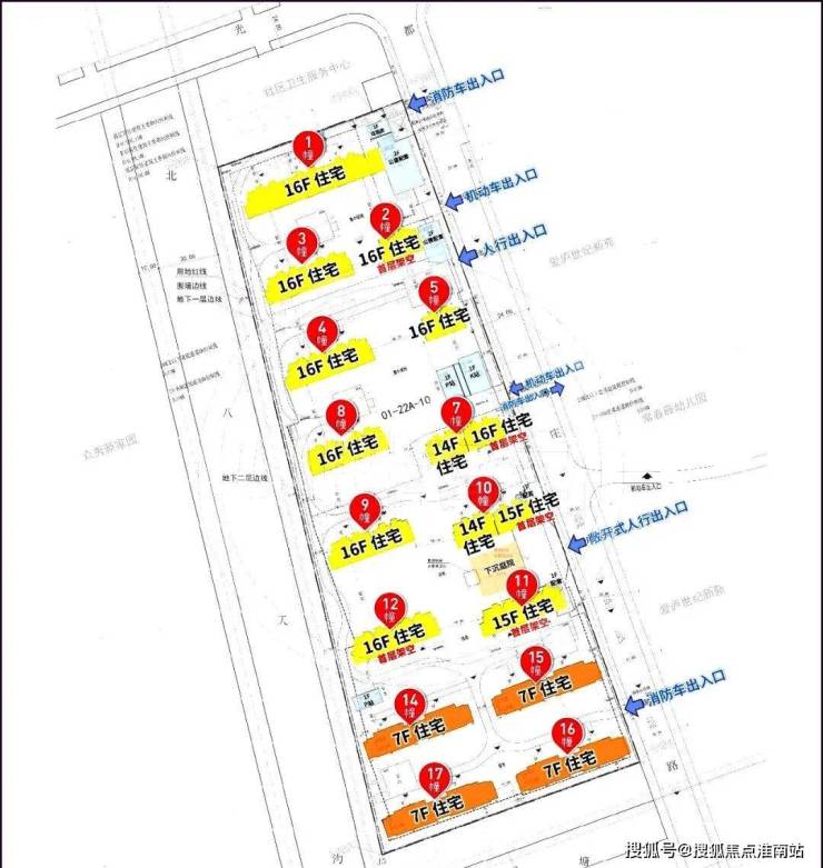 根据项目规划设计方案,项目拟建11幢14-16F高层住宅、4幢7F多层住宅以及若干社区配套用房,共计规划约752套可售住宅;小区人车分流,规划有下沉式庭院、地下会所,2#、7#、10#、11#、12# 设置有架空层,打造泛会所空间。