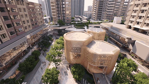 绿野街区:约45度角贯穿的街区,充分将中兴公园的自然引入中心广场,打造游弋、休憩、社交式中央静谧活动区,中央广场有三个自然亲切的树屋,共同形成一个开放且亲密的城市打卡点、自然栖息点。