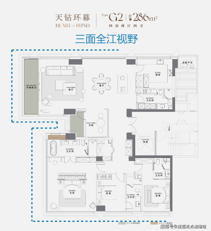 2)286㎡户型:三面看江“全景舱”,它是澐启滨江的定价天花板之一