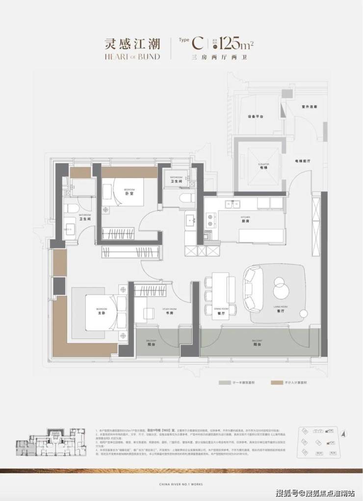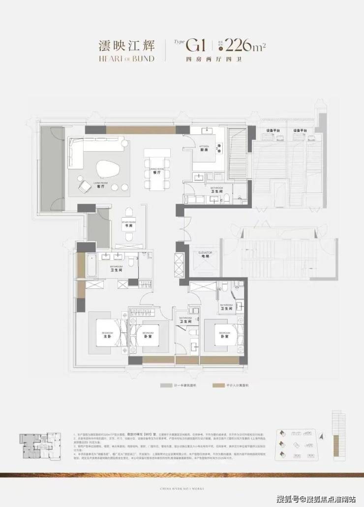 ④ 顶豪标配直接拉满:中西厨、两梯一户、独立家政动线、四卧全套房,主卧更是“总统套”级别的配置,且同样是三面看江。