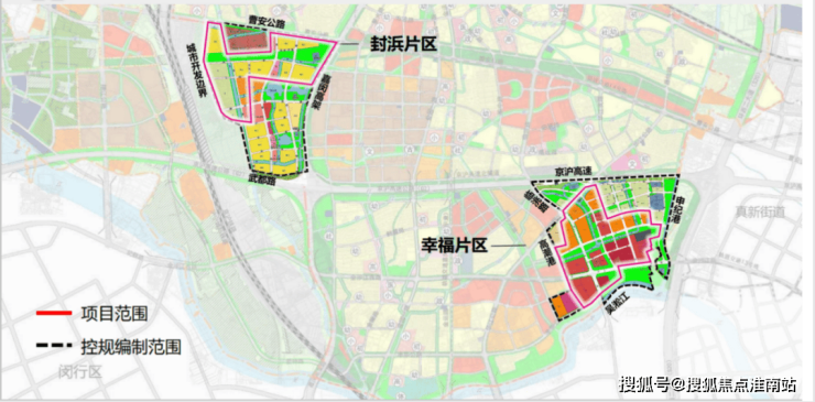 然而,这两个项目规模都受制于土地的捉襟见肘,规模不算大。真正能形成质变的,就是“一区”——“上虹桥·城市更新区”,其中就包括了西区北虹之星社区和东区幸福产业片区!