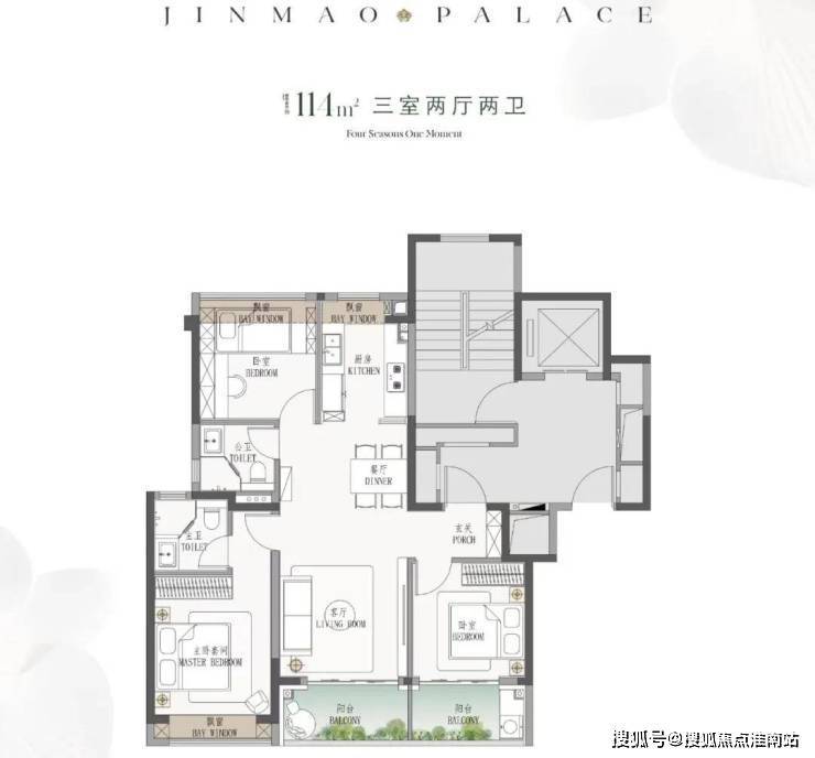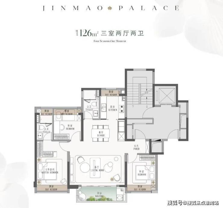 项目推出建面约114、126、144㎡3-4房,偏改善,满足不同家庭需求。