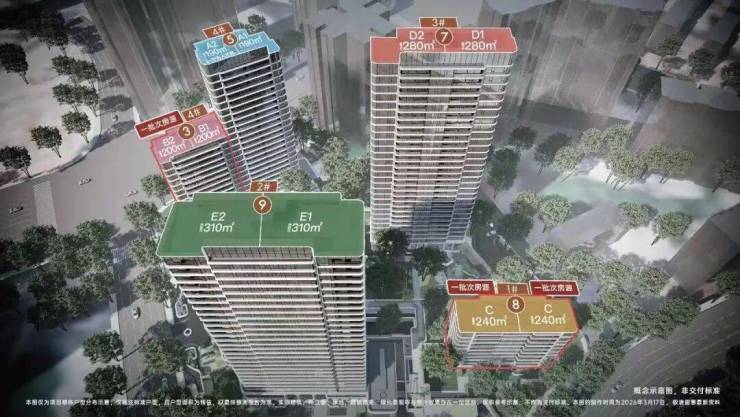 约310㎡四房两厅四卫(E1户型):待售,预计为社区楼王级产品,配置更优,视野无遮挡