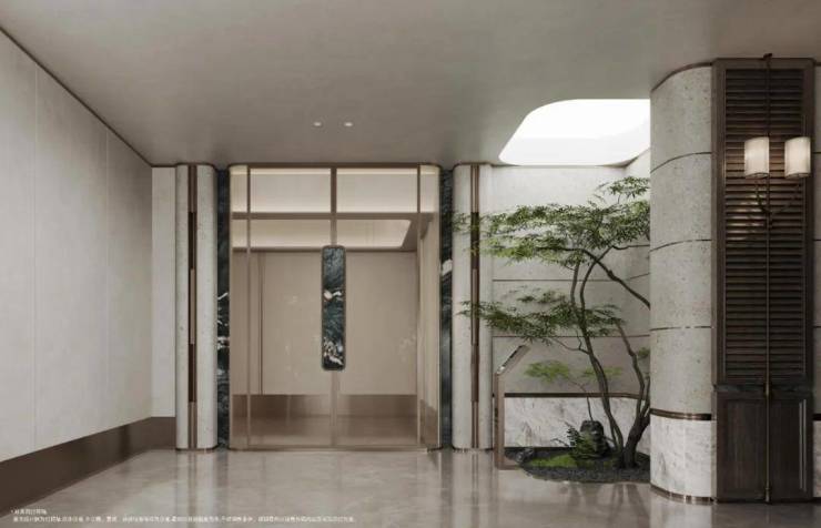项目借鉴高奢酒店的设计,以酒店式艺术门廊作为起点,从鎏金翡绿的奢石饰面,到极具艺术感的迎宾雕塑,再到通透雅致的艺术玻璃景墙,无需刻意调整,便能从职场的繁忙状态,自然过渡到居家的松弛情绪,让归家成为一场充满质感的“沉浸式减压”。