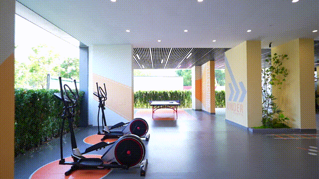 而“三心”则是指三大架空层空间,分别是位于6号楼的潮映会客厅,1号楼的U-YOUNG健身空间,以及2号楼的红叶空间和奇妙空间。更为贴心的是,大部分楼幢都有景观连廊,雨天下楼也不用打伞,这个设计也是板块唯一少有的。