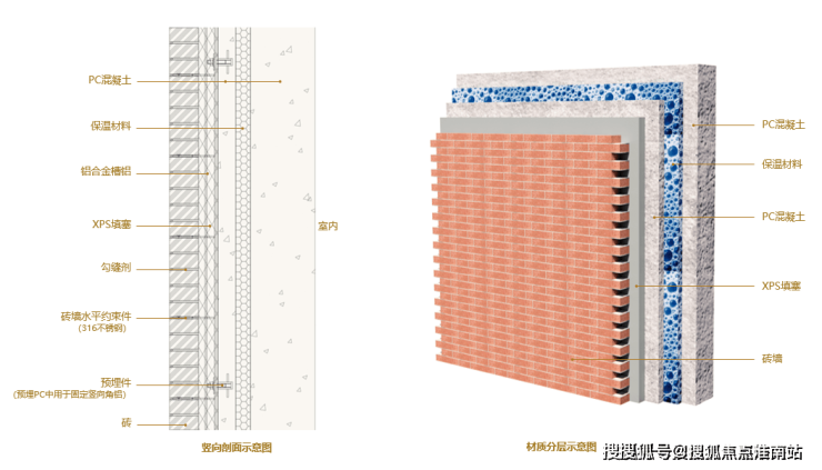 外墙PC板夹芯保温做法示意图