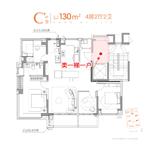③、建面约130㎡4/2/2,130㎡的尺度,165㎡的体验