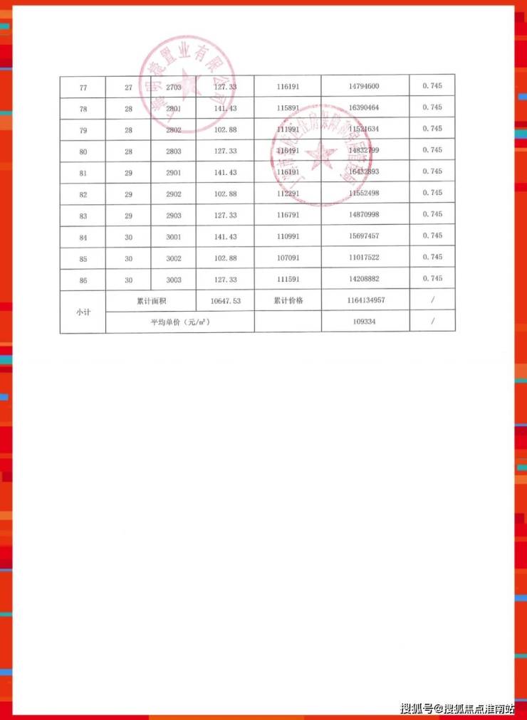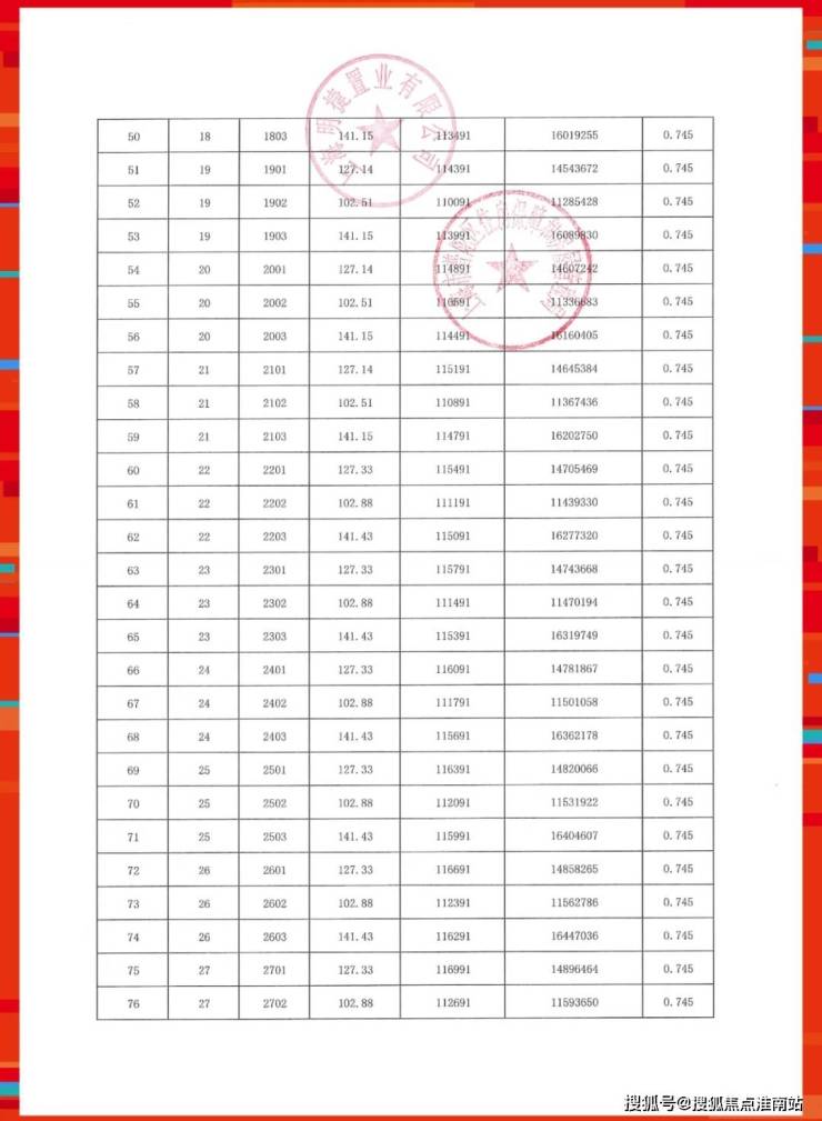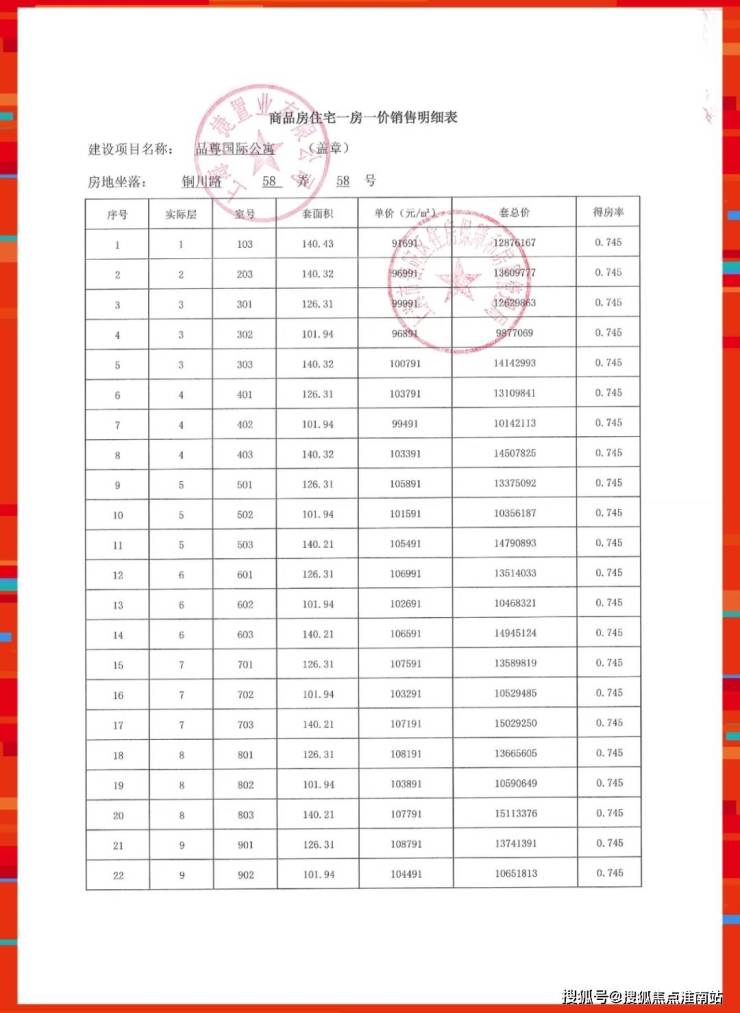 准售房源一房一价表