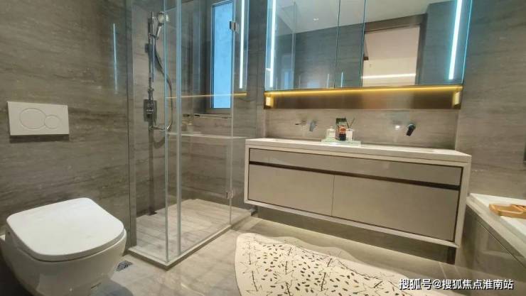 淋浴房地面做了拉槽和导水条,加速水流出,连地漏都要做个独特造型。