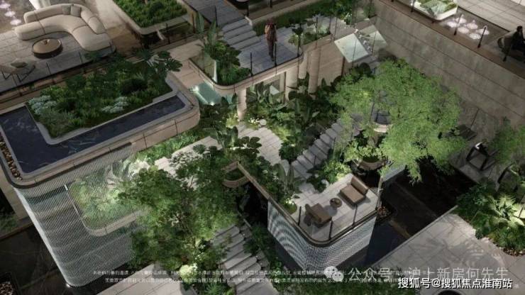 点睛之笔在于 4层悬浮式阶梯, 设计理念据说来自全球十二大奢华酒店之一的 迪拜丽晶公寓, 每一个观景露台都种植着不同的植被,一步一景, 更重要的是,不同的露台对应着不同的观景视野点,将不同高度的下沉式庭院景观,通过极其优雅的方式传递给了业主。 这个归家体验可以说是拉满了!