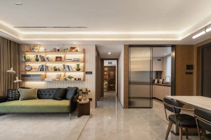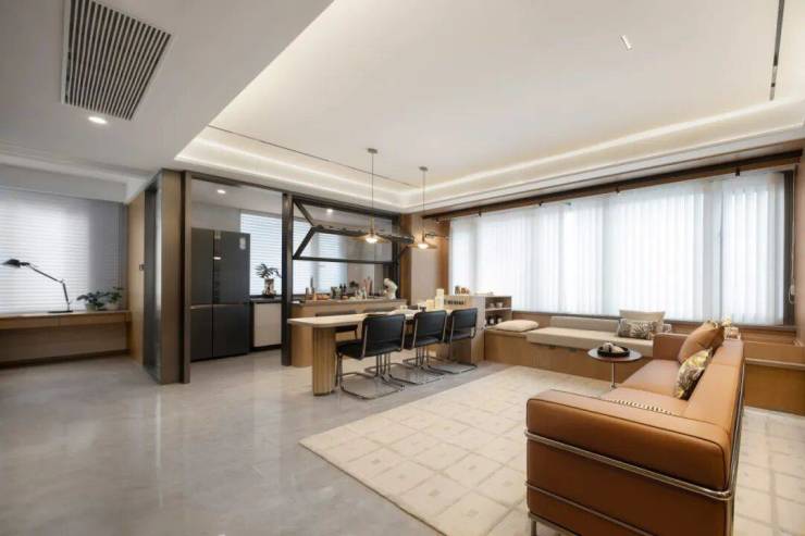 LDKB一体式打造,联动餐厨空间和休闲区,配上超大景观阳台,将室外景色引入户内,打破空间边界,引飞叶与花香穿堂留痕。阳台作为现代人向往自然的精神角落,以秘境庄园为主题进行空间设计,居家步履的尽头,邂逅勃勃生机。周末的午后,阳光打在摇椅上,品一盏清茗,暖意在花间鸟语中绽放。