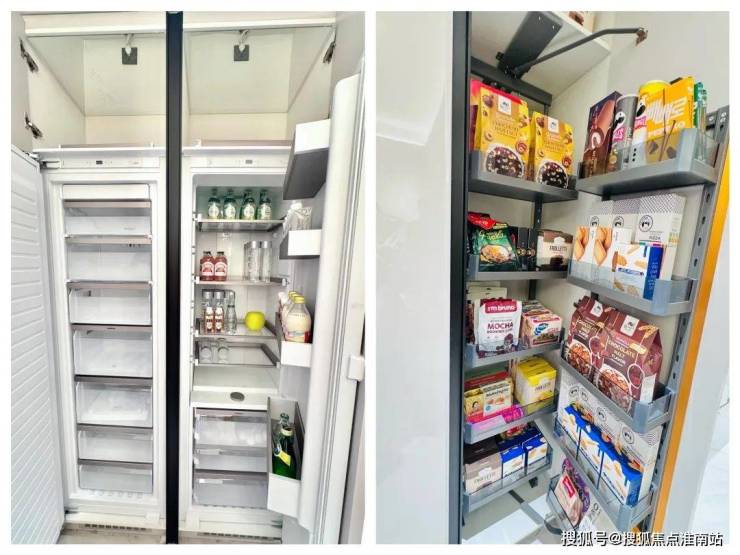 还有嵌入式的嘉格纳双开门冰箱+零食柜,更省空间;
