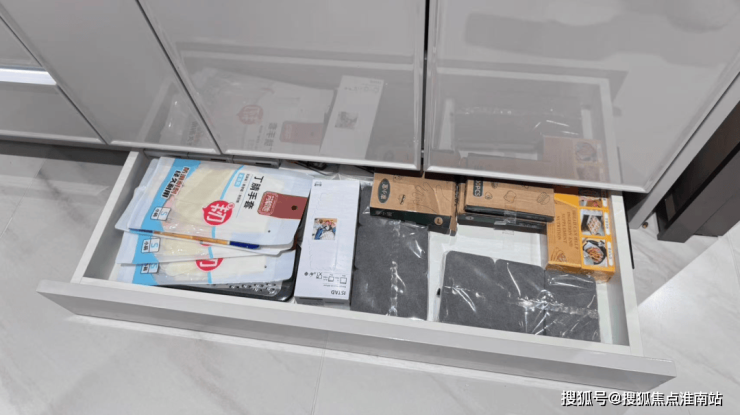 甚至连厨房最容易被遗忘的角落也都做足了收纳,而且不是传统抽屉,只需要轻轻踢一下就能弹开。