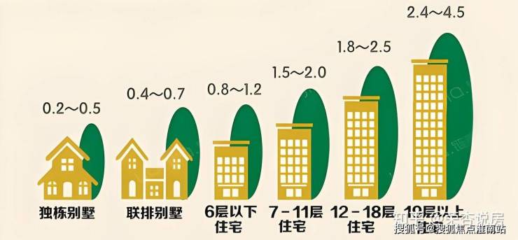 一般高层小区容积率为2.5~3.5,而超高层小区可去到4.5~6,甚至现在深圳还有容积率超过10的超高层小区。