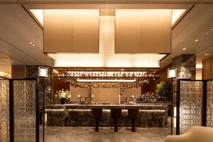 地面、墙面、吧台都用到石材,纹理和质感纤毫毕现;