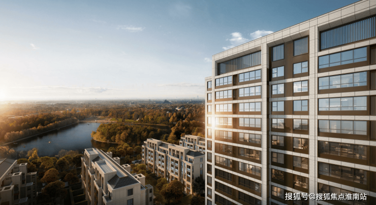 建筑规划上,项目是现代典雅主义建筑风格,外立面以米黄色真石漆为主,结合局部干挂石材,配以精致的线脚,深色的建筑基座,透明隔热玻璃、深灰色断桥铝窗框等,在立面上形成层次感。线条舒朗挺拔,和自然滨水景观融为一体。
