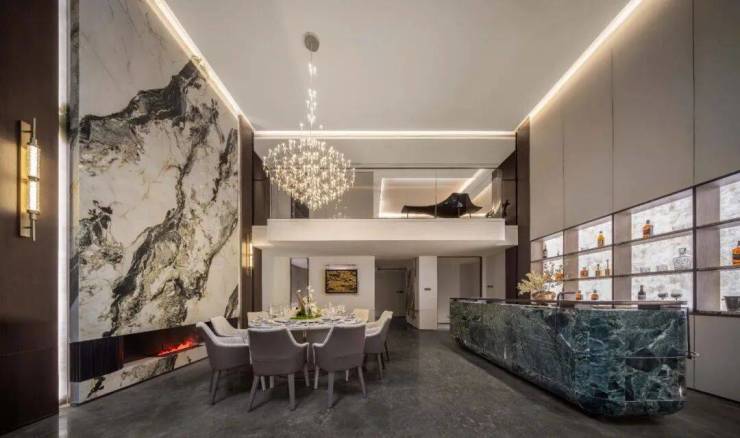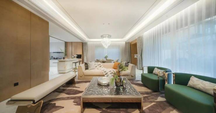 久映颂月府,随处可见极具年代感的红梅、贵妃罗汉松、羽毛枫和黑松,样板间里还有意大利顶级鱼肚白、宝格丽石材、雀眼木……那种高奢感、传世感皆不彰自显,让一众江景大平层都黯然失色。