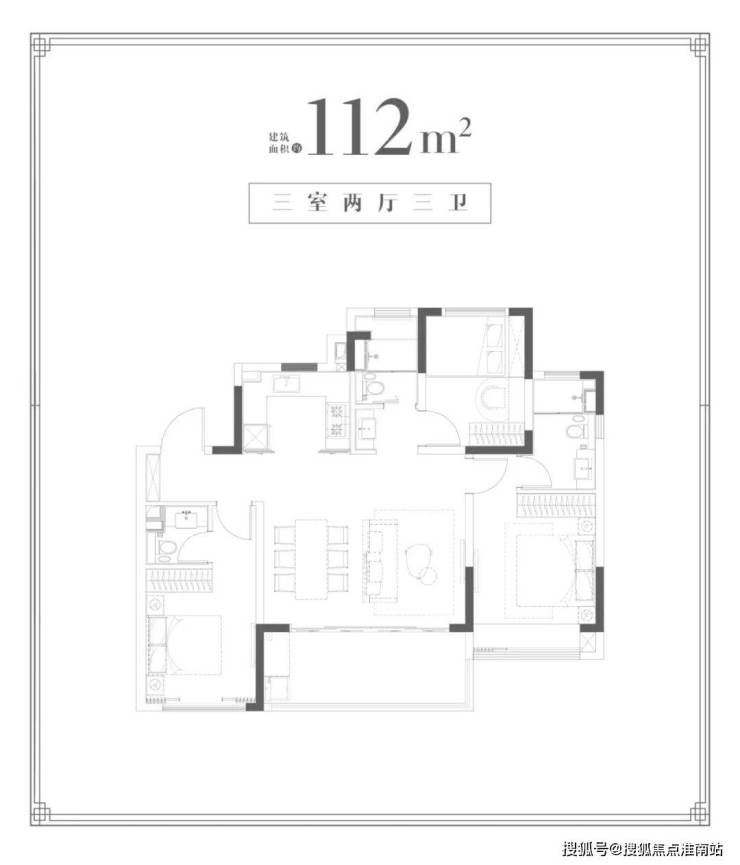 洋房户型-悦雅建筑面积约112㎡ 3室2厅3卫