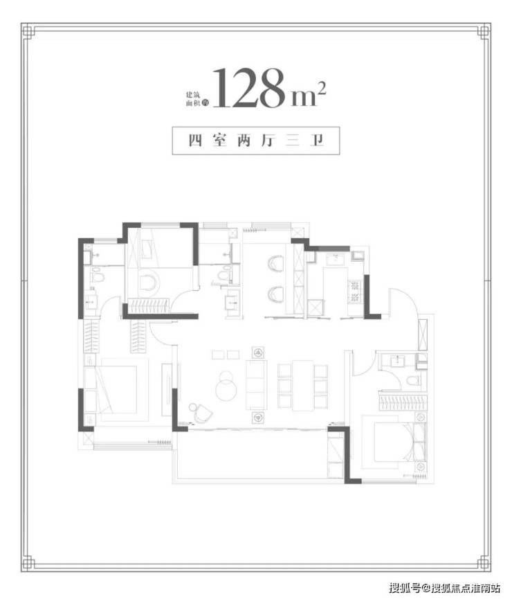 洋房户型-臻雅建筑面积约128㎡ 4室2厅3卫
