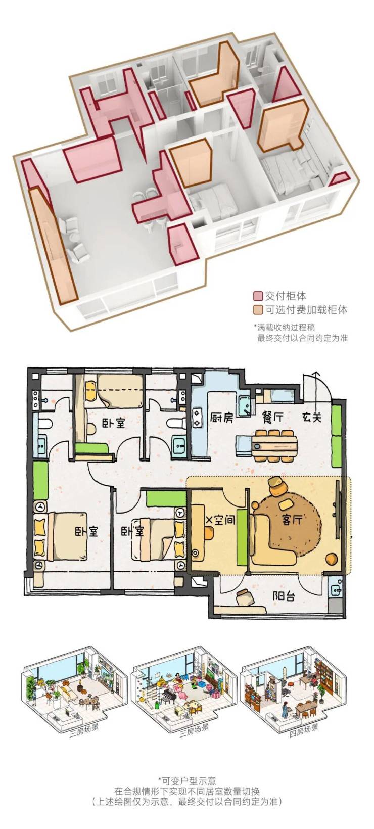 可变户型:以全户型全周期可变满足长期居住需求,与家庭共生长