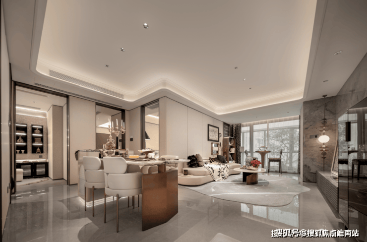 社区景观方面,项目运用室内手法室外化设计构想,将垂直景墙、悬浮观景台与叠水景观立体穿插,形成情随境转的沉浸式体验,自然元素渗透进室内,并与室内空间动态互动.