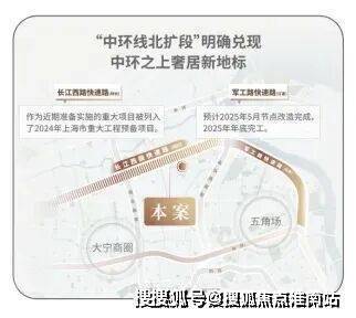 交通方面:项目紧邻长江西路地铁站(直线距离约150米),1站江杨南路,5站复旦,7站五角场.中环线北扩段明确兑现,军工路快速路25年开工,长江西路快速路列入上海市重大工程清单预备项目,快速链通城心,随着中环线北扩段的政策明确,淞南将正式进入中环时间.未来经逸仙高架,进入南北高架、内环高架、中环高架,可快速链通南北上海.