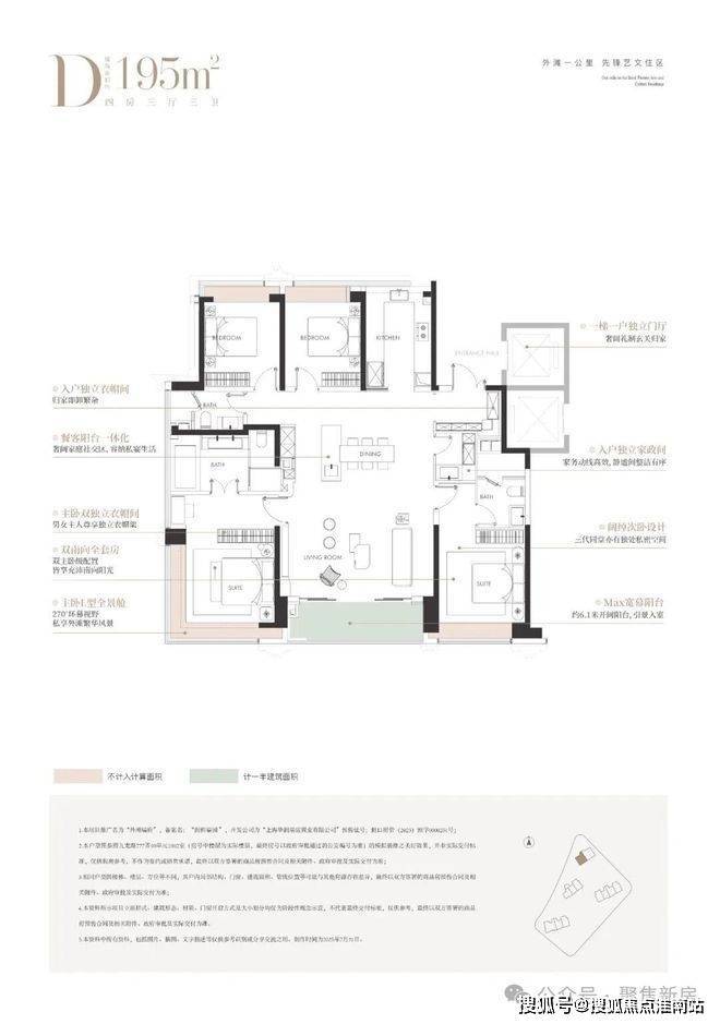 亮点:私梯入户,四转角窗构建环幕视野,双主卧套房设计,全屋四分离次卫,满足多代同堂与高端社交