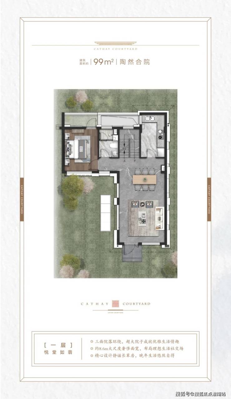 【泰禾·海上院子】以院落空间为中心,270°三面环绕,围合式布局,自然恣意流淌,花木繁盛,有序共生,形成动静皆风景的多重私享。