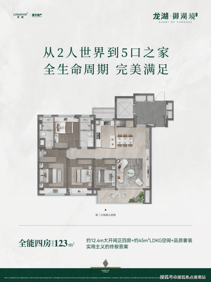 约123㎡全能四房,无论是2人世界还是5口之家,完美适配全生命周期,四开间朝南向,超大采光面!想起观萃的125㎡去年也是一房难求!这次更是升级了环幕视野阳台,关注的朋友们一定要早定下手。